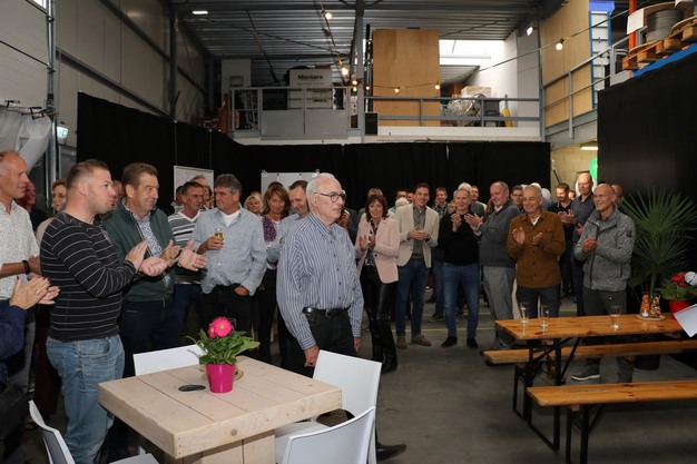 Laurens was not even born when Montera Techniek (short for Montage elektronische regel apparatuur) was founded, as he noted at the start of his speech on Saturday. Nevertheless, he managed to flawlessly recount the company history, but not before calling co-founder and guest of honour Louis Wubben forward.