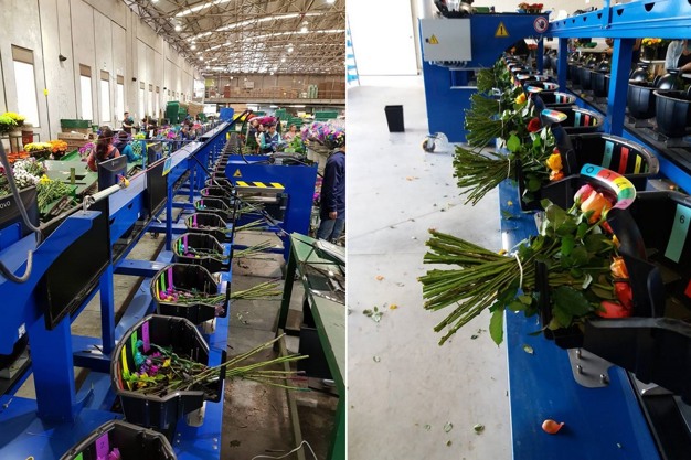 According to Arnaud Nouhant, export sales manager at Mécaflor, the machine is more flexible than many think. “In many people’s minds, our carousel-type belt had to be operated by a dozen workers. We are now proposing configurations enabling to run the machine with only 3 operators”, he says. “For a 12-stem bouquet, the productivity will be over 200 bouquets per hour, each operator placing 4 stems in the bowl. The same recipe can be programmed on the software to be produced with 12 operators, each handling 1 stem. The productivity then rises to 1200 bouquets per hour, and can even go up to 1500”.