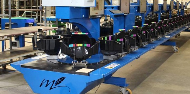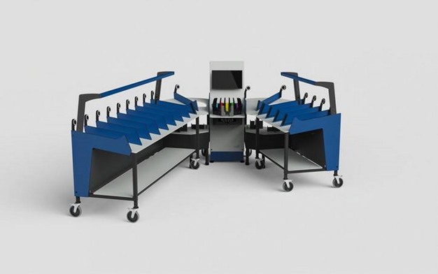 The other approach that was presented at the IFTF is the single workstation, which uses the same patented bowl and software as the belt but requires only one worker. “Step by step, they can complete twisted and harmonious bouquets that will all be identical.” So, how does it work? “It guides production using LED lights linked to the recorded bouquet program. Production can be monitored in real-time on a tablet or phone. Tables are optional, and available in different configurations: 2, 4, or 8 compartments, with the possibility of having tables on both sides. On top of that musculoskeletal disorders, especially carpal tunnel syndrome, are no longer an issue compared to a completely manual process.”