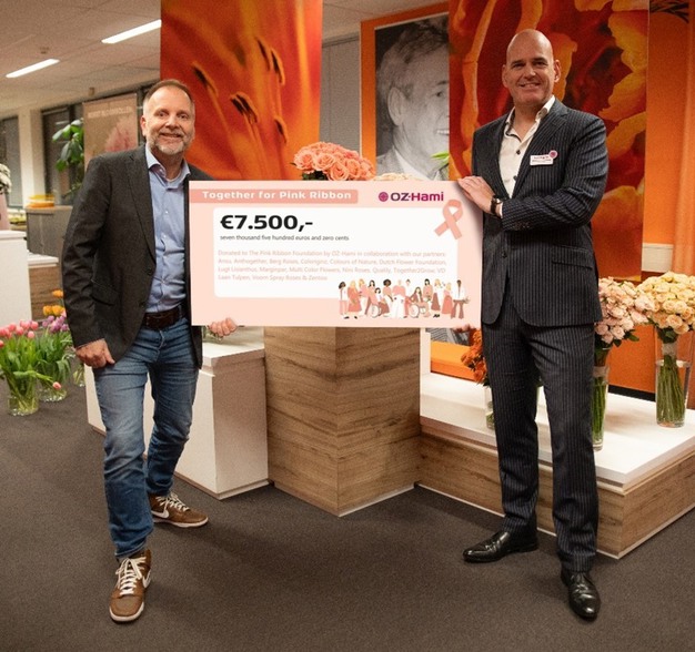 With the sale of a special selection of flowers, flower exporter OZ-Hami and several growers, with the support of the Dutch Flower Foundation and Coloriginz, raised €7,500 for Pink Ribbon, a national organization dedicated to the fight against breast cancer.