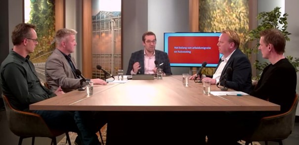 In the talk show, in addition to grower Geert-Jan, Eric Douma of LTO Nederland, Thomas Zwiers of the Vereniging van Nederlandse Gemeenten (VNG) (Association of Dutch Municipalities) and Kees Pleijsier, process director for housing labor migrants for municipalities and regions, discussed the topic during the Day of Agricultural Housing.
