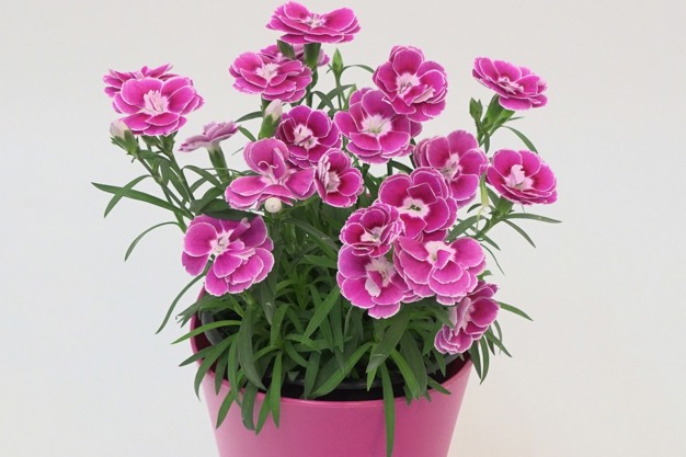 One in Dianthus stands for pot and cut carnations, known on the market for their excellent quality and for fulfilling all requirements. In addition to PINK KISSES®, the best-selling single variety, and Oscar®, the most successful series, other highlights from Selecta's wide range will also be on display. "Aura" is a successful new introduction with a special charisma. With strong, upright growth and bright pink flowers with a white edge, the new stand-alone carnation is suitable for large pots and various other product types.