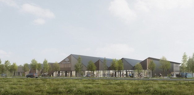 The 90-meter-wide building has an asymmetrical roof and a central hall 25 meters wide and 12 meters high, where a mezzanine has been created to accommodate offices, a canteen, and recreational areas for Garðheimar's staff. The garden center also features a restaurant and numerous attractive shop-in-shops. The warehouse will be equipped with a green roof.
