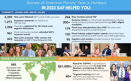 “This year brought new and exciting opportunities for the floral industry,” says SAF CEO Kate Penn. “SAF was there to help the industry put those opportunities to work and keep the industry informed about economic forecasts, trends, and more.”