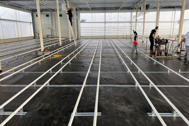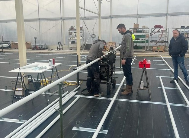 The greenhouse itself is now already equipped with an innovation, Bart explains. "The pipes are equipped with a smart 'tapering' with which they are simply yet foolproofly pressed together. This action is performed after the cultivation floor is placed so that the pipes are placed directly in the supports. The result: a super-fast and clean process!"