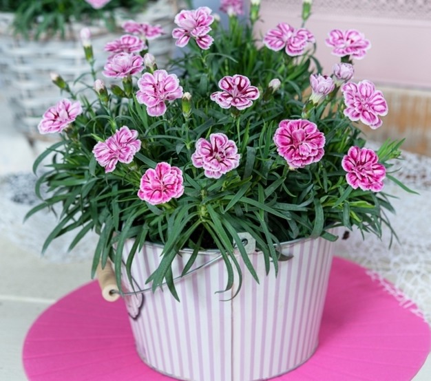 Pot Carnation highlights: Strawberry Eyes and Viva Magenta