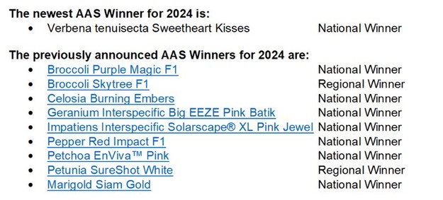 All-America Selections (AAS), North America’s most well-known and respected non-profit plant trialing organization, has one more new AAS Winner available for the 2024 gardening season. This is in addition to the nine AAS Winners announced last fall, bringing the total to 10 new AAS Winners for this season.