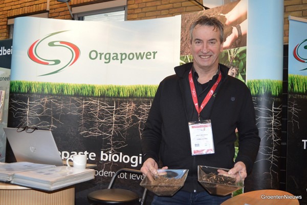 Larger plants, more shoots, more roots. That's how Albert Dortmans, of Orgapower, sums up the results from a trial conducted by Compas Agro together with blueberry grower Schrijnwerkers, applying trichoderma spores in soft fruit. At the Strawberry Day event, he explained how just 1 gram of the Orgapower Core Mix contains 25 million beneficial trichoderma fungal spores. It is a wood mulch substrate which can be mixed into growing media.