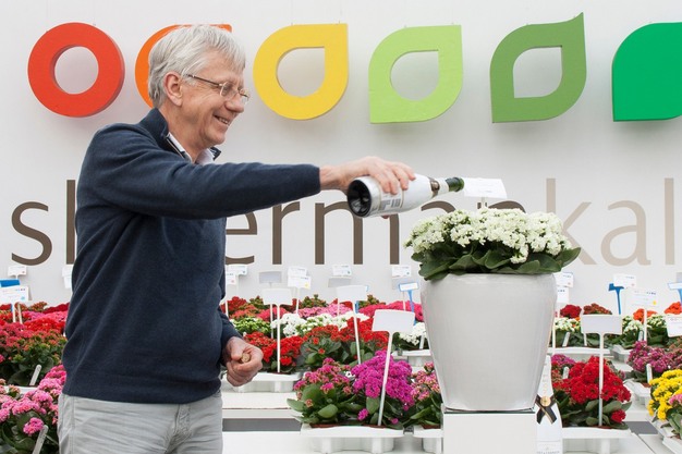 On Tuesday, January 16, Frans Blom christened his own Kalanchoë blossfeldiana. This Kalanchoë was specifically selected for its qualities, as the 'Frans Blom' variety blooms for a long period and has an impressive shelf life of up to 100 days. This variety is pure white and, according to Blom himself, it's the longest-lasting Kalanchoë ever developed.