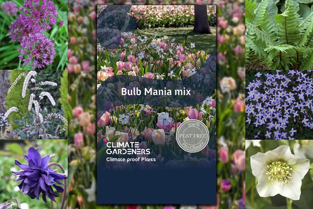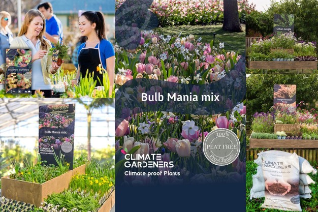 Bulb Mania is one of several well-thought-out mix concepts of the Climate Gardeners programme. Based on a rotating method, Rijnbeek Perennials delivers garden centres new and interesting, mixtures every month, with a strong focus on various challenging climate conditions throughout the year. While the Bulb Mania mixes concentrate on increasing early-season biodiversity and prolonged flowering, other mixes offer plants that regulate rainfall or can easily beat the heat. To name a few, there is the Urban Jungle Mix – designed for shady, wet conditions early in the year, and the Drought Resistant Mix for a water-wise, low-maintenance border in scorching hot summers. Rijnbeek Perennials has segmented its broad collection of over 5.000 varieties based on their strongest assets, like deep roots, water-absorbing qualities, heat tolerance, and magnetic effect on bees and butterflies. And with a product range that wide, garden centres can count on unique, rare varieties that truly stand out and deviate from standard perennial offerings. As the entire Rijnbeek production is grown 100% peat-free, all mixes in the Climate Gardeners programme are potted in peat-free compost as well.
