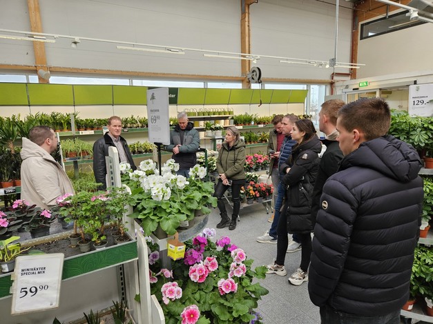 The journey then continued to Malmö, Sweden, where Xander van Reisen (managing director of Noviflora Sweden) guided the growers through the brand-new distribution center in Helsingborg. This distribution center is built to strengthen Noviflora's logistics network in Sweden. Furthermore, there were several appointments with buyers from various garden centers (Billigblomst, Plantorama, Blomsterlandet, Plantagen, Gamst Blomster) and hardware stores (Bauhaus, Hornbach, ICA MAxi). It was a busy program with many educational and interesting visits.
