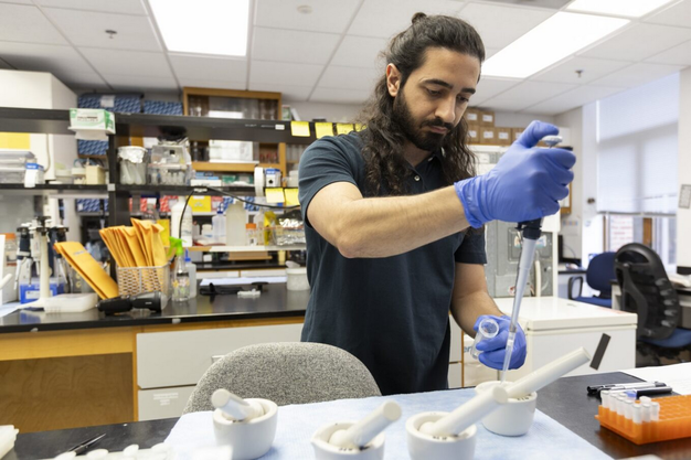 A researcher in the UF/IFAS horticultural sciences department prepares plants grown on the International Space Station for examination. Photo: UF/IFAS