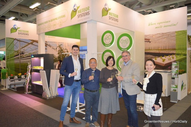 Meteor Systems has been active in China for a decade now – a milestone that was celebrated at the Fruit Logistica with long-time partner, a main player in the Chinese horticulture industry, Oritech. Ten years ago, the partners realized the first Meteor Systems project in the Chinese region. A good reason for Junyi Xu, a representative of Meteor Systems in China, to catch up with Mrs.Wu Shaojuan of Oritech and tomato grower Mr Benson of Joydon Farm, the first client in the region ten years ago.