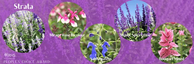 Visitors to RHS Garden Hyde Hall were asked to indicate their favorite Salvia variety in the Floral Fantasia area. Over 100 species varieties were displayed with one winner: Salvia farinacea 'Strata' from Floranova. The main characteristics praised by visitors were the bi-colours, compact habit, and ability to attract bees. Amongst the runners-up were Salvia greggii Mirage⢠'Rose Bicolour' (Florensis), Salvia 'Mystic Spires Blue' (Florensis), Salvia patens (Bertrand/Econ Seeds) and Salvia viridis 'Bouquet Mixed' (Suttons).