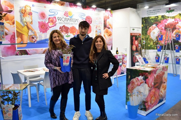 Deborah Ghione, Matteo Ghione and Monica Scaparro of NIRP International presenting "Le Profumatissime della Riviera dei Fiori" at Myplant & Garden 2024 in Milan, Italy.