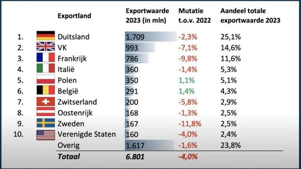 Last year, Poland was the country where the level of import stayed on the same level as in 2021. The export numbers for 2023 show that Poland remains the 5th export destination for ornamentals from the Netherlands with a difference to Italy (4th place) of only 10 mln euro.