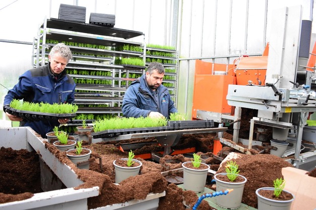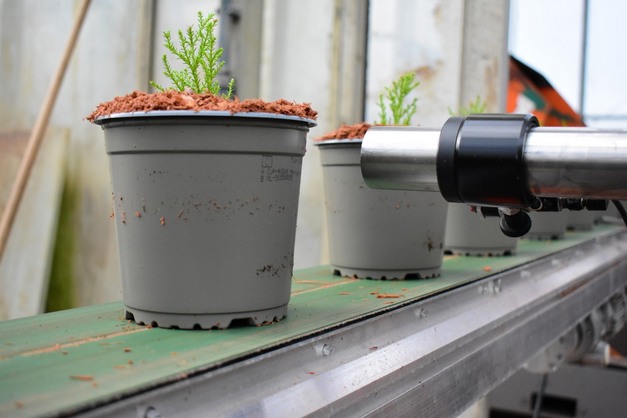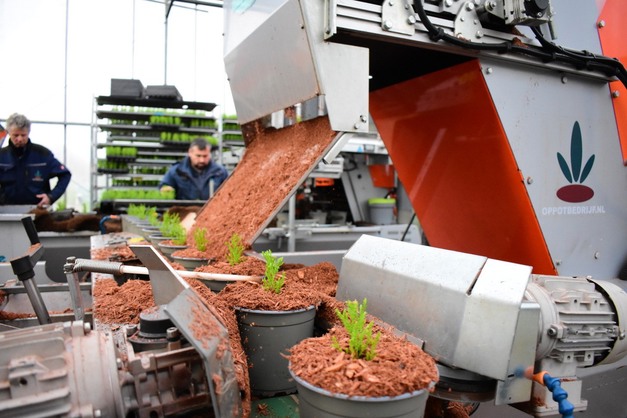 Our colleagues of BPnieuws met him on-site at a conifer nursery. This growr wants 80,000 plants potted which is roughly 1 ha. "We're quite familiar with this kind of job," Martin says. "It takes us a few days or maybe a week, and then this team can move on."