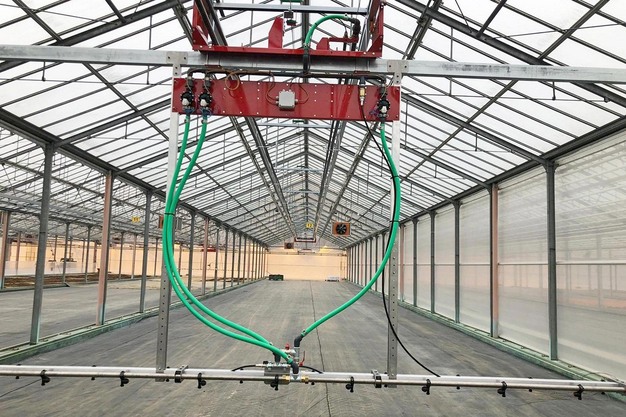 Motorized irrigation beams with a dual-track sliding system that guarantees stable and precise movements. The beams enable irrigation with nozzles, flood irrigation, spraying, and treatments with special nozzles and high-pressure kits.