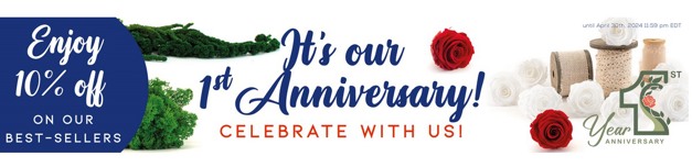 To celebrate their first year anniversary, their 10 best-selling products are on special offer throughout April. "An opportunity to try or stock up preserved red, pink or white roses, green amaranth, hair moss, reindeer moss etc," says Corbière.