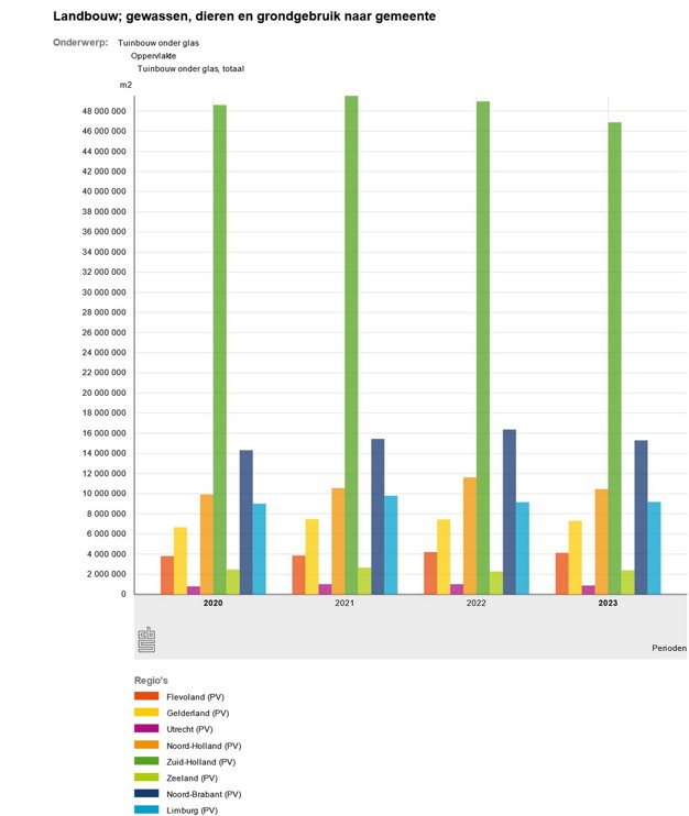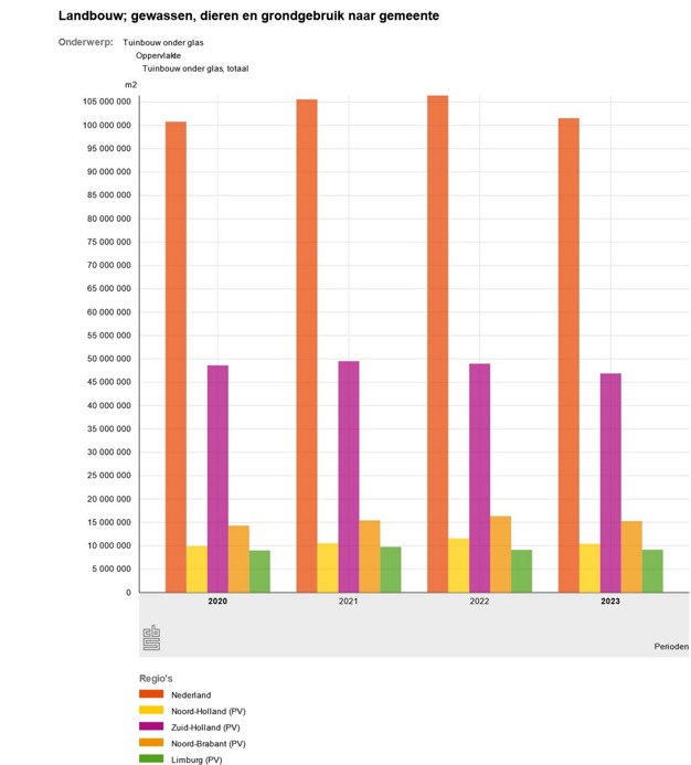 Can Dutch greenhouse horticulture still grow, or will the sector (necessarily) shrink in area? This is the subject of a public debate that's spurred by the statements of Frans Timmermans and Klaas Knot. Recent figures from Statistics Netherlands (CBS) provide insight into last year's greenhouse area in Dutch provinces.