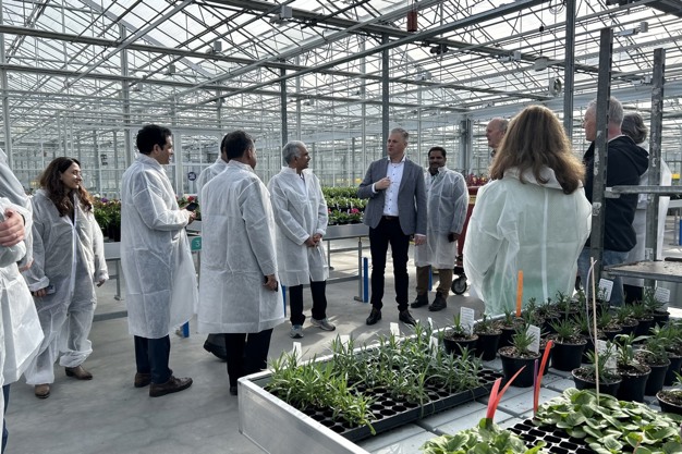 At HilverdaFlorist: Shri. Priya Ranjan (Joint Secretary of the Ministry of Agriculture & Farmer's Welfare & MD, NHB), Mr. Frederik Vossenaar (Ministry of Agriculture, Nature and Food Quality), Dr. Ranjit Singh (Director of International Co-operation), Mr. Dayanand Appa Sawant (Deputy Commissioner of Dairy Development), Mr. Satya Pinisetty (First Secretary of Economic & Commerce at the Embassy of India), Ms. Tanu Priya (First Secretary of Political Affairs at the Embassy of India), Mr. Sritanu Chatterjee (Senior Policy Advisor at the LNV Department of the Embassy of the Netherlands), Ms. Ilse van Dijl (Ministerie LNV) and Ms. Marieke Florijn from NVWA joined Shri. Manoj Ahuja.