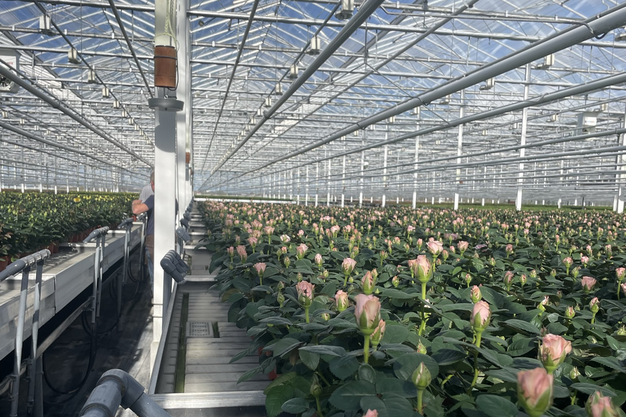Infinity pot-roses being grown in a greenhouse in the Netherlands.