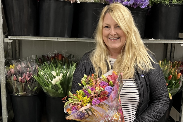 Debbie Kline, Florabundance Sales manager, shows a sample bouquet of assorted flowers