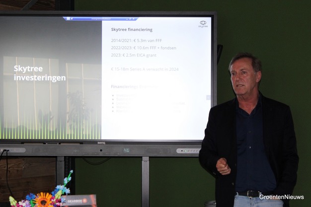 The figures with an explanation from Rob who also specifically thanked Rabobank. He was 'extremely grateful' to the bank, which brought a smile to the face of the attending bank researcher Cindy van Rijswick. He also mentioned Horticoop, which joined last year and is currently the largest shareholder of Skytree.