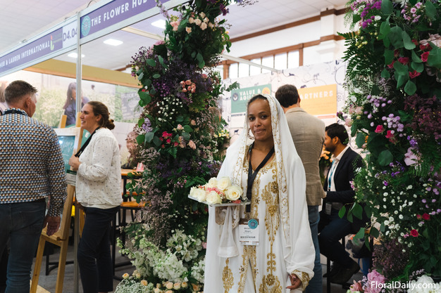 Visitors were welcomed by Miriam Mbugua at the booth of the Flower Hub & Lauren International.