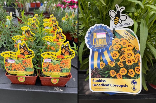 Pollinator health has been a topic at the top of people's minds over the last few years. Numerous studies have shown that consumers are interested in bee-friendly plants and pest management practices and are willing to pay a premium for plants grown with bee-friendly practices. Plant marketers have responded to these findings by creating flashy point-of-sale tags for plants well-known to be highly attractive to pollinators including butterfly weed (Asclepias) and Coreopsis (Photos 2 and 3).