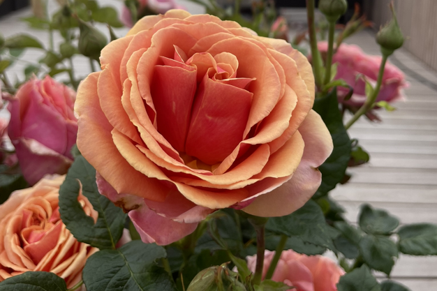 The Orange Sunrise variety is also known as the Herman Salling Plant 'n' Relax. Rosa explains: "The rose was developed in honor of merchant Herman Salling, and baptized in 2022 by Karin Salling in Aarhus. The rose is characterized by extreme health, the dark green leaves are glossy and thick, almost leathery. The foliage contrasts beautifully with the large salmon-orange flowers. Healthy and resistant roses are popular, they should be easy to deal with. Abroad, this variety is sold under the name Orange Sunrise."