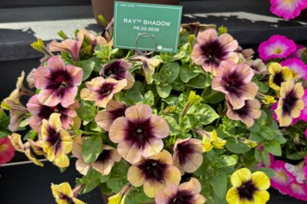 Another petunia bound for the winner's podium is Danziger's Ray Shadow. This color-evolving petunia features a dramatic deep purple, nearly black eye with bold yellow blossoms. The blooms transition through hues of rose and purple, finally maturing to muted purple and bronzy tones. Each petunia in the Ray series features large blooms and a mounded habit that create outstanding hanging baskets and combos."