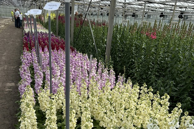 According to the company, this achievement certainly did not go unnoticed. In two weeks' time, the team led more than 100 national and international visitors in tours through the trials. The highlight was the 'growers day' on June 12th, when no less than 40 Dutch growers and trade buyers came together to view, evaluate and discuss the varieties. The Evanthia team states that there was much praise for the quality of the trials. "One of the visiting growers described the uniformity of the Matthiola trial as 'enviable', especially considering that four different series were grown. Amongst them were the leading Milla series, and the breakthrough Japanese-type selectable series StoX®, in which a preview of new colors for the near future was shown. With StoX®, growers now have the opportunity to offer a year-round supply of Matthiola. Good news indeed for the buyers present!"