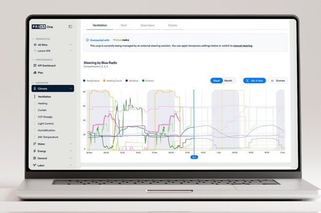 "More and more factors are fluctuating in and around greenhouses. Consider energy, climate, and sustainability. These changes increasingly transcend the mind of growers. Moreover, more parties are bringing additional intelligence to cultivation with their technologies. With Priva One, we integrate solutions from partners such as Blue Radix, IUNU, and Source.ag."