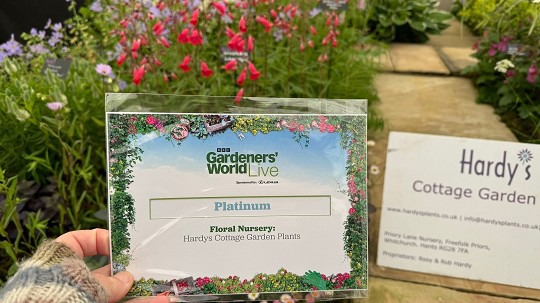 Designed by Rosy, who built the display with Rob; Hardy's Plant was absolutely delighted to achieve a Platinum Award, equivalent to an RHS Gold Medal, for its display of peat-free grown seasonal herbaceous perennials at BBC Gardeners World Live which ran from 13 - 16 June 2024.