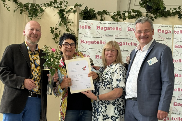 Two days earlier, Roses Forever also received an accolade in the International Rose Novelty Competition in Baden-Baden, Germany. During this rose competition, 139 garden rose varieties were judged by an international jury. Aside from the 'Golden Rose of Baden-Baden' award, the participants could also compete for other honorary prizes such as the one by the Casino Baden-Baden. This year, it was Roses Forever's Orange Sunrise Plant 'n' Relax that received this prize: "It's a big honor to win in Baden-Baden. Every prize or medal that our roses win is an acknowledgement of their qualities, and our breeding efforts," Rosa says. If the name Orange Sunrise Plant 'n' Relax sounds familiar to you, that may be because this rose won gold in the 'Hybrid Tea' category of the 7th annual International Rose Trials in Monaco.
