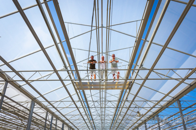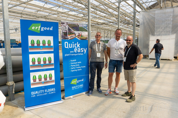 Part of the new HortiHouse greenhouse is the patented platform and Jacco van Delden, Jac Gabriels and Roy Bransen are present