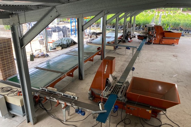 They add: "A recent example is the Nursery automation upgrades at ePlants Trade Nurseries. Powerplants installed a Javo potting machine where interconnected conveyors feed a "distribution" buffer belt. Using a specialized forklift the staff can now pick up and distribute hundreds of pots throughout the nursery that were previously handled manually."
