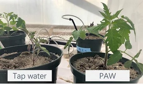 Tomato plants in containers in which the fertigation program was supplemented with tap water or PAW. University of California, Davis