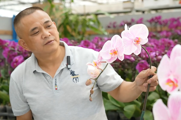 Nie became in engaged in the phalaenopsis business while he was studying at Shenzeng Open University. "Twenty-seven years ago, I studied engineering cost at Shenzhen Open University. By chance I came into contact with Taiwanese agricultural exports, and that's how I got to know the phalaenopsis.