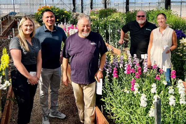 Peter van Noort (Evanthia) talked through the new Stox® Stock and Barcelona Dianthus with the team from Green Valley Floral (John, Janet, Hector, & Curtis).