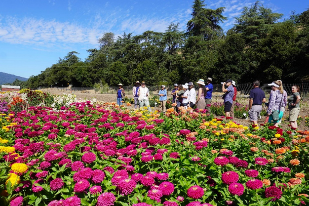 Syngenta Flowers hosted visitors and toured their field trials in Gilroy. Highlights of their trials included Karma Dahlias, Opus Snapdragons, and Uproar Zinnia. Below is a photo of the Syngenta Flowers team led by Alicain Carlson.