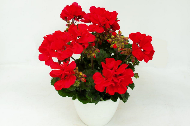 The assortment of zonale pelargoniums is enriched by the varieties Solfaro Faro, Solfaro Moniz and Solfaro Salvo. "Solfaro Faro stands out with its dark foliage and bright red flowers, which create an impressive contrast. Solfaro Salvo immediately catches the eye with its bright pink flowers."