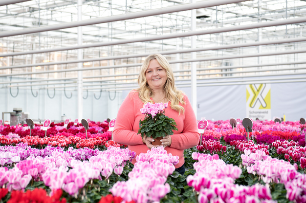 "Consider the large-flowered cyclamen. Need one for late summer? Choose Leopardo. For late fall or winter, Mammoth NxtGen is your product. And for brightening the dark days of late winter, go for Vintro." Kathy also highlights one of Schoneveld Breeding's latest developments: the Super Serie Fusion. "Initially available in one color as a large-flowered cyclamen, the midi variant is now available in three colors. Fusion is very stable and easy to grow. It perfectly exemplifies where Schoneveld Breeding invests its energy: in breeding. Selecting the right plants for this variant was a massive task, but our investment of time and energy paid off. We're very proud of Fusion, showcasing what Schoneveld Breeding stands for: high-quality products that growers can truly rely on."