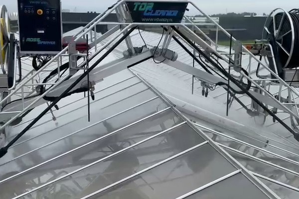 The new rods/moss sprayer, developed by Van der Waaij Machinebouw from Hazerswoude, uses a powerful spray technique that effectively removes moss and dirt from the rods. The greenhouse roof is then washed with the greenhouse roof cleaner, resulting in a crystal-clear and clean surface, says Barry. "This innovative technique not only ensures thorough cleaning, but also reduces the risk of moss growth on the inside of the greenhouse and significantly reduces the risk of leaks. This contributes to a longer greenhouse life and maintains a healthy greenhouse climate, free of fungi and diseases."