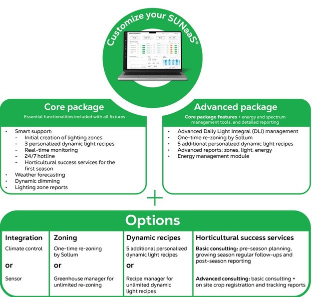 "In the spirit of the flexibility inherent in dynamic lighting, we have designed the SUNaaS platform offering to suit the preferences of growers who want to benefit from certain functionalities rather than others," mentioned François-Roy Moisan, co-founder and CTO of Sollum. "As a result, we are proposing a core package included with the purchase of any fixture and an optional advanced package, to which a customer can add additional features that match their priorities. Like our technology, our services now support a highly personalized experience."