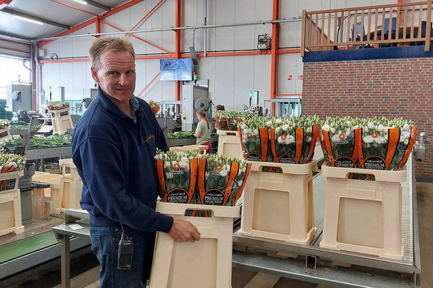 Jan van Wijk, owner of Waalzicht Nursery, operates a state-of-the-art 8.5-hectare greenhouse where the company grows 40 million stems of Lisianthus annually in 20 different varieties. He is also the chairman of the FPC Lisianthus. Jan says, "Our aim is always to grow top-quality flowers. This is achieved to great satisfaction; our 'Premium Selection' is renowned for its weight and the abundance of flowers on each stem. We currently use the Fc588 in combination with the high Fc598 support shelf, but when we have full bunches, the flowers are very compressed. When I learned about the development of the new low reusable support shelving, I was immediately enthusiastic. The lower shelving supports the Lisianthus below the flower, reducing pinching and therefore decreasing damage to the flowers. Additionally, the lower support makes it much easier to remove the flowers from the crate with less risk of damage. Within the FPC, we discussed this among ourselves, and other growers are also positive. It is wonderful that we, as the Lisianthus product group, can start using the Fc595 so soon."