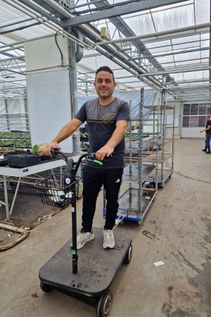 "If you want to take good care of your staff at the nursery or in the greenhouses, this is an ideal means of transport, and they find it fun and easy too," Johan Velting tells us enthusiastically. His Workstep is still a fairly new concept in the flower and plant world, yet there are already some companies using it, at home and abroad.