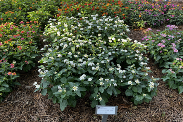 Lantana Heartland White 2025 was a UGA Top 5 Industry Open House Winner from the Flower Trials at the University of Georgia. "Heat-loving and well-branched, it has large umbels on top of dark, glossy foliage. It is pollinator-friendly and great for landscape as well as mixed containers."