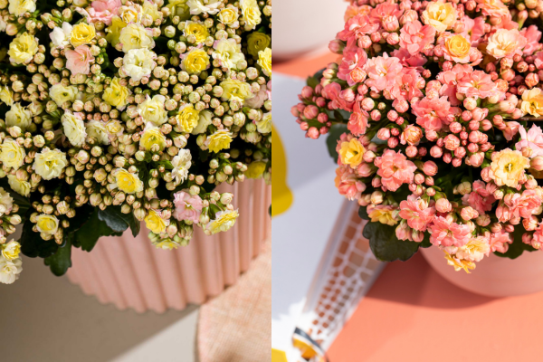 Among the millions of kalanchoe plants, chrysanthemums and celosias at the potted plant nursery Vilosa, there is also Mozaic. A kalanchoe that at first glance just has pastel shades, but nothing could be further from the truth. The longer it is outside, the more its flowers change color through the influence of light and temperature.